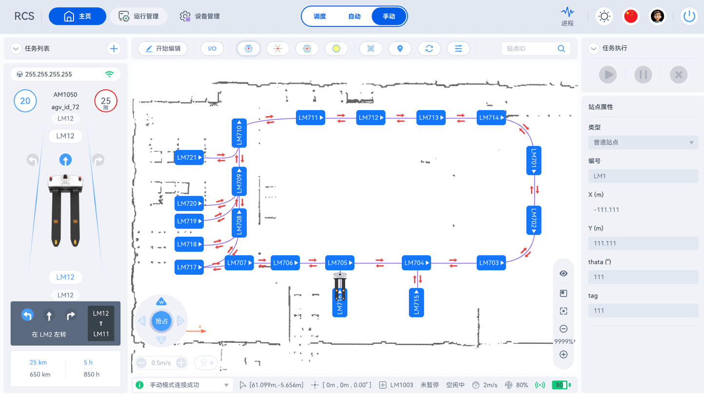 用于管理AiTENhuatihui机器人的RCS(机器人控制系统)是一个直观的工具,它具备高精度传感定位,可异常实时响应处理,应对货架位移/临时障碍物干扰。
